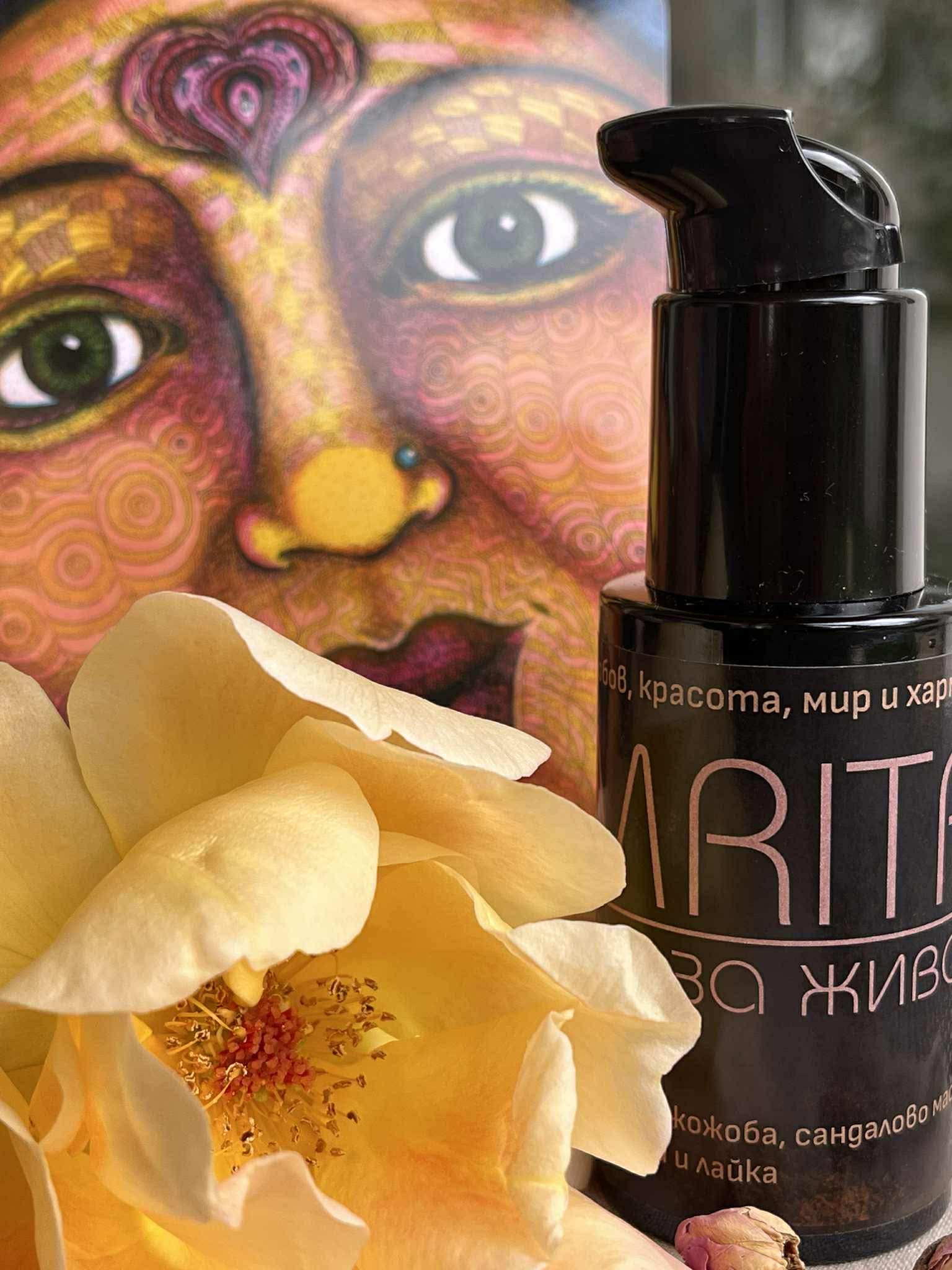 В състава му съм включила нежни, лечебни растения, роза, сандалово дърво и лайка, Jojoba oil и Rosa Damascena, Santalum Album и Matricaria Chamomilla.